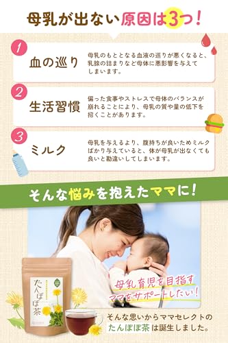 たんぽぽ茶の成分のタラキサステロールには、催乳作用(母乳を出す作用)があるとされています。